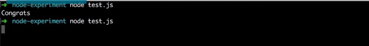 But since we know we are already in the right directory you can literally just type test.js. So this will force node to run that file that we just created and there we go.