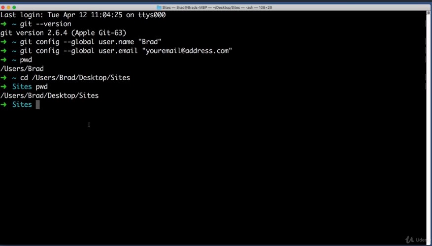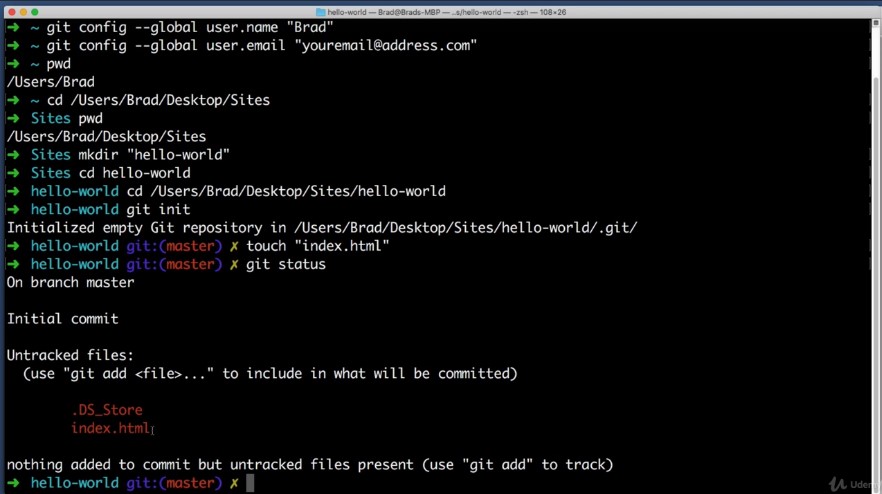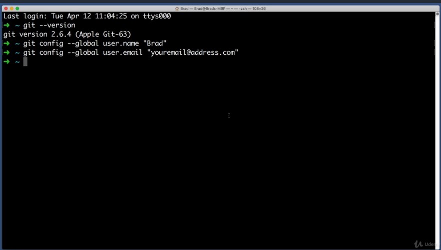 All right, let’s begin by personalizing a few of your settings. When Git track your changes it also tracks who is making those changes. So we want to let get know about your name and your email to type this in
